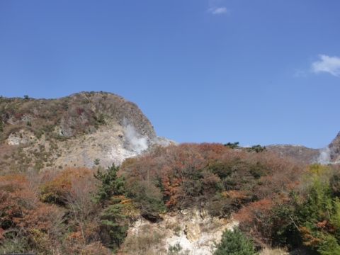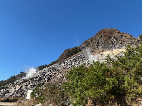 塚原温泉は伽藍岳の中腹にあって、5~10分程度登ると火口見物もできる。