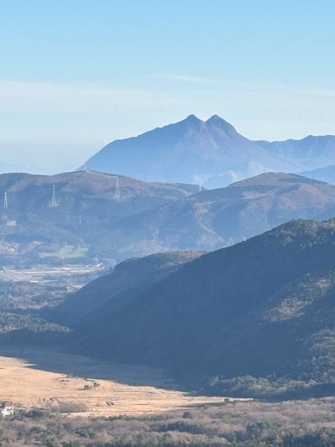 中央奥に由布岳。この山の手前麓に湯布院がある。