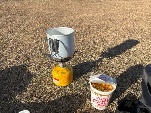 最高の眺望を楽しみながらカップヌードルを食べる。