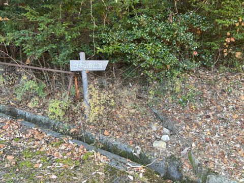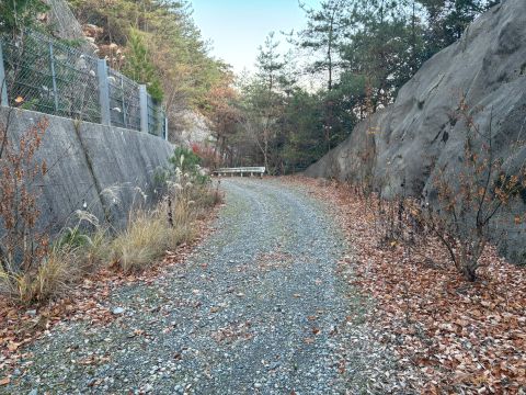 この付近まで車で来れば、門扉の横をすり抜けて登山道に入ることができる。