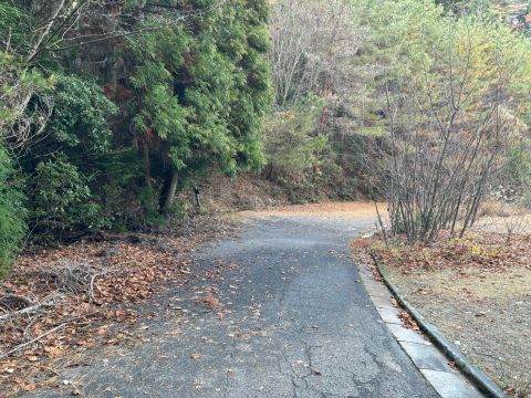 桧山側から来た場合、ここを右手に進む。高級車で来られる方はここのスペースに駐車されることを推奨したい。