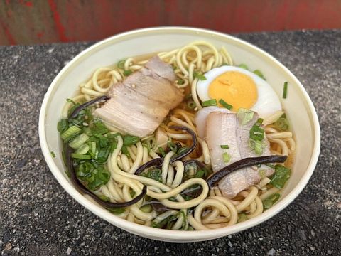 うどんは先刻デラックスを頂いたのでラーメンを選択。なかなかに具沢山で豪華な内容。