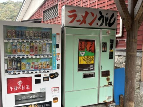 益田で自販機うどんを食べた後、国道9号を南下、日原の道の駅で麺類自販機のはしごとする。